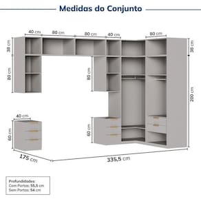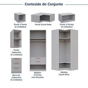 Informação Complementar: 1x Guarda-roupa Modular 80cm sem Portas com Gaveteiro Jade Cabecasa Madeiramadeira Cinza Urbano
