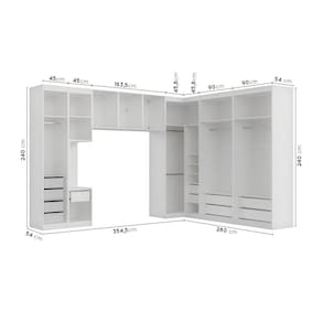Medida de Cada Item: Guarda Roupa 1 Porta: 240x45x554cm; Guarda Roupa 2 Portas: 240x90x54cm; Mesa de Cabedeira Esquerda: 240x45x54cm; Canto Reto: 240x99,6x101cm; Ponte 3 Portas: 68x163,5x54cm.
