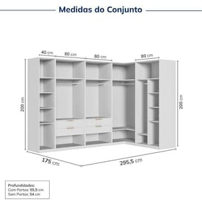 2x Guarda-roupa Modular 80cm sem Portas com Gaveteiro Jade Cabecasa Madeiramadeira Branco