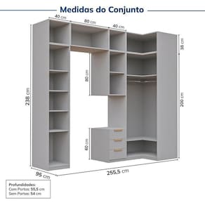 1x Kit 2 Portas para Guarda-Roupa de Canto Reto Modular 95cm Jade Cinza Urbano