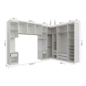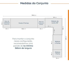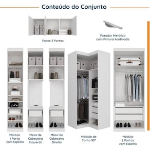 O Guarda Roupa Modulado de Canto 9 portas e 3 portas com espelho 6 peças com duas Mesas de Cabeceira Hera CabeCasa foi desenvolvido para trazer a experiência de ter seu móvel customizado de acordo com a necessidade do seu espaço. O conjunto conta com módulo de uma e duas portas com espelho, canto reto, duas mesas de cabeceira e ponte 3 portas. Com essa proposta, CabeCasa oferece para seus clientes a possibilidade prática e custo-benefício em oferecer uma linha de modulados que faça a função de um móvel planejado. O cliente pode escolher entre os módulos disponíveis, em diferentes variações de acabamentos, os que mais se adaptam ao seu gosto e ao seu dia a dia. Além disso, conta com design moderno que irá trazer muito mais sofisticação e aconchego para a decoração. Acabamento da Prateleira: Pintura UV Escala de Brilho da Prateleira: Semi-Fosco Possui Cabideiros: 05 Acabamento da Gaveta: Pintura UV Escala de Brilho da Gaveta: Semi-Fosco Material do Puxador da Gaveta: Metal Possui Organizador de Gaveta: Não Acabamento da Porta: Pintura UV Escala de Brilho da Porta: Semi-Fosco Material do Puxador da Porta: Metal Acabamento dos Pés: Pintura Altura do Espelho: 239.5 Altura dos Pés: 8 Ambiente Principal: Quarto Complexidade da Montagem: Alta: deve ser montado por um montador especializado Cor: Branco Geada Cor do Produto: Branco Geada Cor Interna: Branco Escala de Brilho: Semi-Fosco Espessura do Espelho: 3 Fita Integrada: Sim Formato do Espelho: Retangular Gaveta com Chave: Não Informações Complementares: Puxador Metálico Acetinado, portas em chapa de 18mm com dobradiças com amortecimento, gavetas com corrediça telescópica, fundos em 6mm, cabideiros em aço cromado suportando até 10kg e Maleiro até 25kg. Itens Inclusos: 1 Guarda Roupa 1 Porta, 1 Guarda Roupa 2 Portas, 2 Mesas de Cabedeira, 1 Canto Reto, 1 Ponte 3 Portas, Manual de montagem e Kit ferragens Largura do Espelho: 90 Linha ou Coleção: Hera Manual de Montagem e Instalação: https://cdn2.madeiramadeira.com.br/atributo/herval-edez-rs/1360202-manual-gr-hera-12pts-espelho.pdf Material da Gaveta: MDF/MDP Material da Porta: MDP Material da Prateleira: MDP Material dos Pés: MDP Material Principal: MDP Medida de Cada Item: Guarda Roupa 1 Porta: 240x45x554cm; Guarda Roupa 2 Portas: 240x90x54cm; Mesa de Cabedeira Direita e Esquerda: 240x45x54cm; Canto Reto: 240x99,6x101cm; Ponte 3 Portas: 68x163,5x54cm. Montagem Flex: As prateleiras podem ser removíveis com diferentes opções de altura, os cabideiros podem ser removíveis e possuem opções para serem utilizado como calceiro ou como cabideiro. Já os gaveteiros possuem duas posições de altura para instalação nos módulos de Necessita Montagem: Sim Origem do Produto: Nacional Peso: 596.45 Peso Máximo por Gaveta: 3 Peso Máximo por Prateleira: 10 Possui Calceiros: Não Possui Espelho: Sim Possui Pés: Rodapé Possui Portas: 12 Possui Prateleiras: 09 Quantidade de Espelho: 03 Espelhos com Tamanhos Iguais Recomendações de Uso, Manutenção e Limpeza: Deve ser realizada com pano limpo e seco. Sapatas Niveladoras: Não Sistema de Montagem: Cavilha, parafuso e minifix Tipo de Corrediça da Gaveta: Metálica Telescópica Tipo de Dobradiça/Corrediça da Porta: Metálica Tipo de Fixação do Espelho: Fita Dupla Face Tipo de Gaveta: Interna Tipo de Guarda-Roupa: Modulado Casal Tipo de Puxador da Gaveta: Externo Tipo de Puxador da Porta: Externo