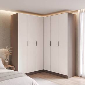 1x Guarda Roupa Modulado 100% MDF de Canto Linear Orion CabeCasa MadeiraOriginals Mocha/Linho
