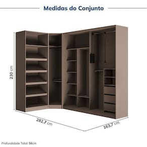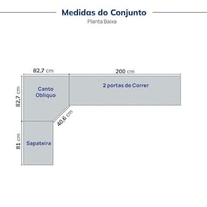 Itens Inclusos: 1 Sapateira, 1 Módulo Canto Obliquo, 1 Módulo 2 Portas Correr, Manual de Montagem e Kit Ferragens