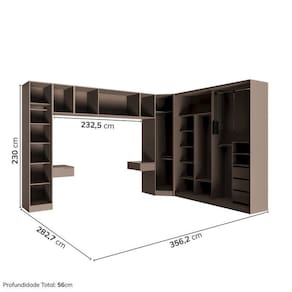 1x Guarda Roupa Modulado 100% MDF de Canto Oblíquo Orion CabeCasa MadeiraOriginals Mocha