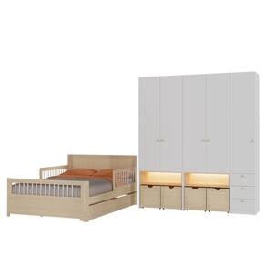 Guarda-Roupa Modulado e Bicama Casal Reversível Infantil Wave Casatema MadeiraOriginals Natural/Branco
