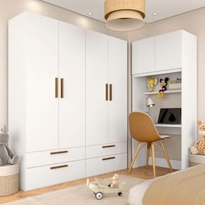 Guarda Roupa Modulado Infantil Joy com Escrivaninha, ideal para você deixar tudo organizado. Um Modulado infantil inteligente, com espaço para os estudos. Com puxadores revestidos em MDF e pintura P.U traz sofisticação e charme.