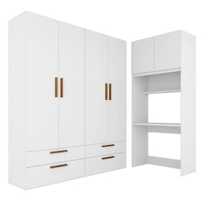 Detalhes Técnicos: Medidas do Produto Montado: A:220cm x L:160cm x L:80cm x P:47cm Medida do Módulo 2pts 2gav:A:220cm x L:80cm x P:47cm Medida do Módulo 2pts: A:220cm x L:80cm x P:47cm Medida da Escrivaninha: A:74cm x L:80cm x P:47cm MDP 15/25mm Acabamento: Pintura UV Tonalidade: Branco/Freijó Puxadores: MDF 18mm Cabideiro interno: Alumínio Gaveta: corrediça metálica Prateleiras suporta até 5kg distribuído Gavetas suporta até 3kg distribuído