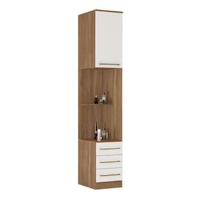 Guarda Roupa Modulado Irlanda 1 Porta Com Mesa De Cabeceira Amêndola/branco - Demartêz Amêndola/branco Guarda Roupa Modulado Irlanda 1 Porta com Mesa de Cabeceira - Demartêz O Guarda-Roupa Modulado Irlanda 1 Porta com Mesa de Cabeceira é para completar a organização do ambiente. Destaque para o maleiro com ampla dimensão, prateleiras para quem não dispensa decorar e organizar ao mesmo tempo e gaveta com corrediças metálicas para acomodação de pequenos acessórios. Toda a linha Irlanda proporciona versatilidade e usabilidade ao permitir diferentes formatos para a montagem do dormitório. Produzido em MDP de alto padrão, com acabamento em pintura UV e puxadores metálicos na cor bronze, a linha é resistente e solução ideal para quaisquer dimensões de espaço. ESPECIFICAÇÕES: - Estrutura em MDP - Pintura UV - 1 Porta - Dobradiças metálicas - 3 Gavetas - Corrediças telescópicas - Prateleiras - Puxadores metálicos na cor bronze - Amplo espaço interno