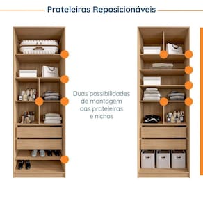 O guarda roupas modular Joy CabeCasa foi desenvolvido para trazer a experiência de ter seu guarda roupas planejado e organizado por uma personal organizer acessível ao cliente MadeiraMadeira. O módulo com Gaveteiro foi desenvolvido para ser versátil e adaptável a sua rotina. Ele foi pensado para quem precisa de espaço para roupas dobradas que podem ser organizadas em seus diversos setores, possui a opção de ser montado com nichos e prateleira sapateira, ou ainda com nichos e divisão de maleiro, em todas as opções existe a possibilidade de regulagem de prateleira. Para auxiliar e deixar a organização mais fácil no dia a dia, o produto ainda conta com um kit de gabarito de dobras e uma cartela de adesivos para identificar os espaços. Desta forma você pode categorizar e separar marromhor a suas roupas mantendo a organização por mais tempo. O modulado possui ainda puxadores em madeira maciça envernizados na cor preta, portas com dobradiças “soft closing” e gavetas com corrediças telescópicas de 45mm. Além disso, conta com design atual e alinhado às tendências, conferindo mais sofisticação a sua decoração sem deixar de lado a praticidade! Acabamento da Prateleira: Finish Foil Escala de Brilho da Prateleira: Semi-Fosco Possui Cabideiros: Não Acabamento da Gaveta: Finish Foil Escala de Brilho da Gaveta: Semi-Fosco Possui Organizador de Gaveta: Não Acabamento da Porta: Finish Foil Escala de Brilho da Porta: Semi-Brilho Material do Puxador da Porta: Madeira Maciça Acabamento dos Pés: Finish Foil Altura dos Pés: 7 cm Ambiente Principal: Quarto Complexidade da Montagem: Alta: deve ser montado por um montador especializado Cor: Cinza Sereno/Avena Cor do Produto: Cinza Sereno/Avena Cor Flex: Não Cor Interna: Avena Escala de Brilho: Semi-Brilho Gaveta com Chave: Não Informações Complementares: Portas com dobradiças com amortecimento e cabideiro em aço cromado. Embalagens 100% recicláveis. Prateleiras 12kg/ Gaveteiro 8kg Itens Inclusos: 1 Módulo Gaveteiro, kit organizer, kit de ferragens e manual de montagem Linha ou Coleção: Joy Manual de Montagem e Instalação: https://cdn2.madeiramadeira.com.br/atributo/tom-da-cor/1168552-manualdemontagem-modulo800-gaveteiro-nichos-v-01.pdf Material da Gaveta: MDP Material da Porta: MDP Material da Prateleira: MDP Material dos Pés: MDP Material Principal: MDP Necessita Montagem: Sim Origem do Produto: Nacional Peso: 102,5 kg Peso Máximo por Gaveta: 8 kg Peso Máximo por Prateleira: 12 kg Possui Calceiros: Não Possui Espelho: Não Possui Pés: Rodapé Possui Portas: 02 Possui Prateleiras: 05 Recomendações de Uso, Manutenção e Limpeza: Retire o pó com flanela seca. Sapatas Niveladoras: Não Sistema de Montagem: Parafuso e Cavilha Tipo de Corrediça da Gaveta: Metálica Telescópica Tipo de Dobradiça/Corrediça da Porta: Metálica Tipo de Gaveta: Externa Tipo de Guarda-Roupa: Modulado Casal Tipo de Puxador da Gaveta: Não Possui Tipo de Puxador da Porta: Externo