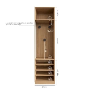 O guarda roupas modular Joy CabeCasa foi desenvolvido para trazer a experiência de ter seu guarda roupas planejado e organizado por uma personal organizer acessível ao cliente MadeiraMadeira. O módulo com Sapateira foi desenvolvido para ser versátil e adaptável a sua rotina. Ele foi pensado para quem precisa de espaço para guardar seus calçados e ainda pendurar acessórios além de um nicho que confere mais versatilidade e organização ao espaço, possui montagem flex, podendo ser montado tanto para direita quanto para esquerda, as prateleiras também possuem a opção de serem removíveis. O modulado possui puxadores e cabideiros em madeira maciça envernizados na cor preta e portas com dobradiças “soft closing”. Além disso, conta com design atual e alinhado às tendências, conferindo mais sofisticação a sua decoração sem deixar de lado a praticidade! Atenção, esse produto deve ser montado juntamente com os módulos de guarda roupas, não sendo indicada sua montagem separadamente! Acabamento da Porta: Finish Foil Acabamento da Prateleira: Finish Foil Acabamento dos Pés: Finish Foil Altura dos Pés: 7 cm Ambiente Principal: Quarto Complexidade da Montagem: Alta: deve ser montado por um montador especializado Cor: Cinza Sereno/Avena Cor do Produto: Cinza Sereno/Avena Cor Interna: Avena Escala de Brilho: Semi-Brilho Escala de Brilho da Porta: Semi-Brilho Escala de Brilho da Prateleira: Semi-Brilho Informações Complementares: Item não deve ser montado separadamente Itens Inclusos: 1 Módulo Sapateira, kit de ferragens e manual de montagem Linha ou Coleção: Joy Manual de Montagem e Instalação: https://product-hub-prd.madeiramadeira.com.br/823299/documents/d30c1069-259d-4a3b-a5e9-97cb1c90b395upaModuladocomSapateiraJoy.pdf Marca: CabeCasa MadeiraMadeira Material da Porta: MDP Material da Prateleira: MDP Material do Puxador da Porta: Madeira Maciça Material dos Pés: MDP Material Principal: MDP Montagem Flex: Módulo pode ser montado com a porta falsa do lado direito ou esquerdo do móvel Necessita Montagem: Sim Origem do Produto: Nacional Pés Reguláveis: Não Peso: 42,5 kg Peso Máximo por Prateleira: 12 kg Possui Espelho: Não Possui Possui Pés: Rodapé Possui Portas: 02 Possui Prateleiras: 04 Possui Rodízio: Não Recomendações de Uso, Manutenção e Limpeza: Retire o pó com flanela seca. Sapatas Niveladoras: Não Sistema de Montagem: Parafuso, cavilha e cantoneira metálica. Suporta Até (kg): 48 kg Tipo de Dobradiça/Corrediça da Porta: Metálica Tipo de Porta: Bater Tipo de Puxador da Porta: Externo