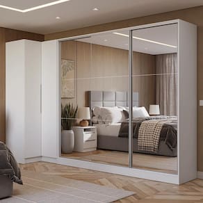 - Um Guarda-Roupa Royale de 231 cm com três portas de correr com espelho