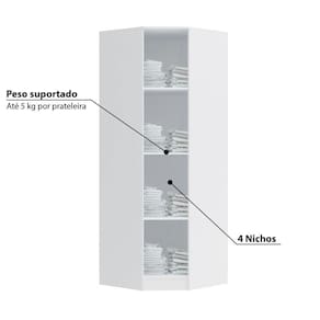 - Peso suportado: 5 kg por prateleira