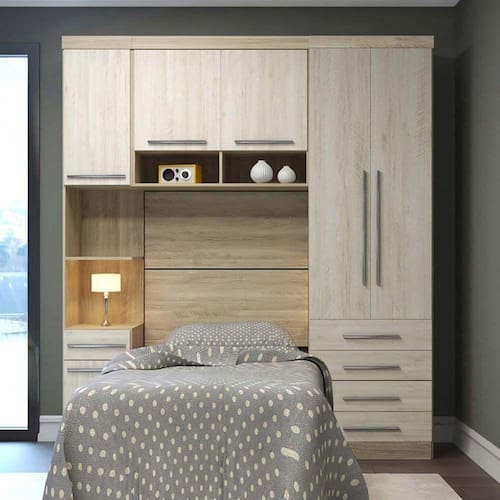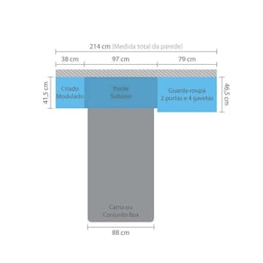 O Dormitório Modulado Master é uma excelente opção para aproveitar o melhor do espaço disponível em seu quarto. Ambiente compacto, ocupa 214cm de parede, porém os módulos podem ser montados separadamente para acomodar da forma que desejar. Conta com um armário ponte com cabeceira para colchão de solteiro com 78cm e 88cm de largura. Gavetas e Cabideiro completam o móvel para uma perfeita organização.