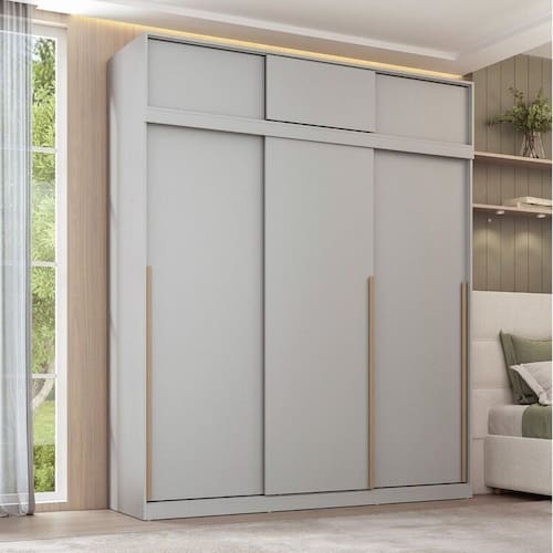 Informação Complementar: 1x Guarda-roupa 3 Portas de Correr Jade Cabecasa Madeiramadeira Cinza Urbano