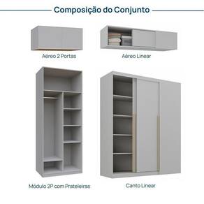 Guarda-roupa Modular de Canto 4 Peças 8 Portas com 4 Portas de Correr Jade Cabecasa Madeiramadeira Cinza Urbano
