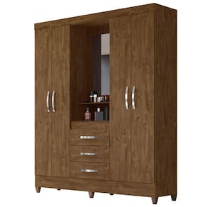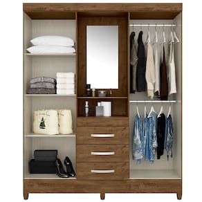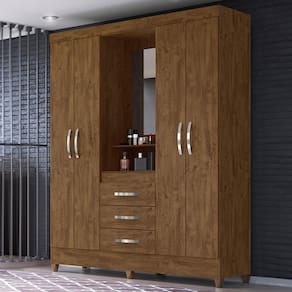 Guarda-Roupa Moval Capri com Espelho, 4 Portas e 3 Gavetas - Castanho Wood