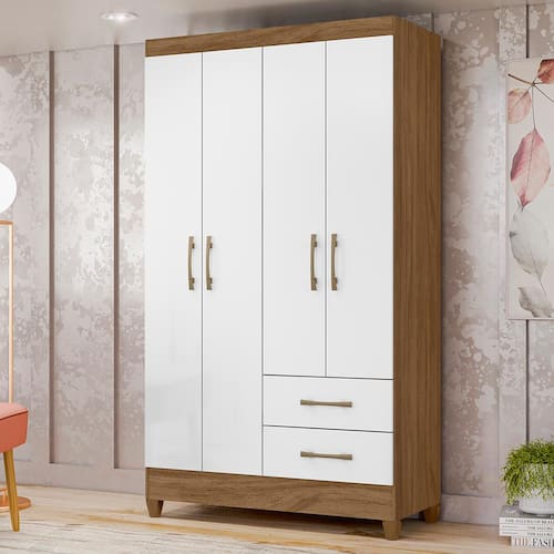 Guarda-Roupa Moval Chile com 4 Portas e 2 Gavetas - Naturale/Branco