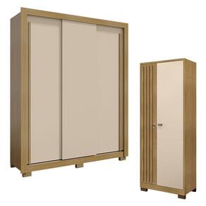 Guarda Roupa Nevoa Flex 3 Portas e Armário Multiuso Versátil com Chave Carvalho Americano Off White - Incorplac