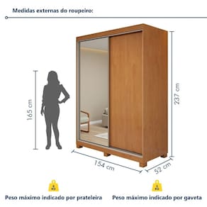 Nosso guarda roupa com porta de correr vai transformar seu quarto! Perfeito para organizar suas roupas, deixando tudo organizado e fácil de encontrar. As 2 portas deslizantes economizam espaço, sem contar que a porta traz aquele toque fundamental, um espelho lindo que amplia o ambiente e vira seu cantinho de produção! Agora você tem seu próprio provador em casa! Com pés elevados, a limpeza embaixo do móvel fica prática, sem mais dor de cabeça para passar pano ou aspirar! Fabricado em 100% MDF de qualidade e com montagem fácil, ele é resistente e durável. Ideal para quarto de casal ou solteiro.
