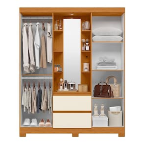 Produto: Guarda Roupa Olímpia Cor: Cinamomo/Off White Camarim Central Com 1 Luminparia De Led, 02 Gavetas Com Corrediças Telescópicas, Puxadores De Mdf Revestidos, Cabideiros Em Alumínio Escala de Brilho: Fosco/Brilho Altura (m): 2 Largura (m): 1,63 Profundidade (m): 0,47 Peso (kg): 89,95 Material: MDP Acabamento: Pintura Uv Material do Puxador: Mdf Revestidos Tipo de Cabideiro: Alumínio Quantidade de Gavetas: 2 - Tipo de Corrediça: Telescópicas Quantidade de Portas: 4 - Tipo de Porta: Bater Quantidade de Prateleiras: 10 Rodízios: Não Quantidade de Pés: 6 - Material dos Pés: ABS Necessita Montagem: SIM Espelho: 1,23 X 0,30 M Manutenção: Limpar Com Flanela Ou Pano Macio Seco, Não Utilizar Produtos Abrasivos, Desengordurantes, Álcool Ou Solvente. Não Expor O Produto Diretamente À Luz Solar E À Umidade. Garantia: 3 Meses