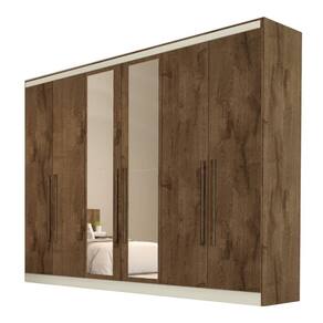 O Roupeiro Oslo 6 PTS 6 GAV Com Espelho MDF - MadeMarcs é a perfeita combinação de estilo e funcionalidade. Com uma construção robusta em 100% MDF (Madeira de Reflorestamento) e um acabamento sofisticado em verniz UV, este guarda-roupa traz um toque de classe e uma escala de brilho semi-brilho que realça o design moderno. Com puxadores elegantes em madeira, 6 portas, 4 gavetas e 11 prateleiras, oferece um excelente aproveitamento dos espaços internos, ideal para organizar roupas e acessórios de forma prática. Possui divisões ELE e ELA, e cabideiros em alumínio, você pode manter tudo organizado com facilidade. As gavetas contam com corrediças telescópicas para um deslizar suave, enquanto as dobradiças modernas e reforçadas garantem durabilidade e eficiência.