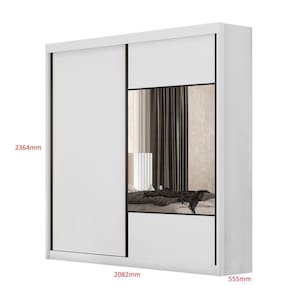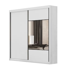 100% mdf, perfil puxador em alumínio bronze, colunado 2,5cm, trilho inferior em alumínio e roldanas com amortecedores, interno ele e ela, espelho inteiro, fundo inteiriço, roldana superior com guia zero e freio, gavetas internas com puxadores e corrediças telescópicas, cabideiro e calceiro em alumínio. Acabamento da Prateleira: Pintura Texturizada UV Escala de Brilho da Prateleira: Semi-Fosco Possui Cabideiros: Sim Acabamento da Gaveta: Pintura Texturizada UV Escala de Brilho da Gaveta: Semi-Fosco Material do Puxador da Gaveta: ABS Possui Organizador de Gaveta: Não Acabamento da Porta: Pintura Texturizada UV Escala de Brilho da Porta: Semi-Fosco Material do Puxador da Porta: Alumínio Altura do Espelho: 120 cm Ambiente Principal: Quarto codigo_ean: 7900288147066 Complexidade da Montagem: Média: pode ser montado por mais de uma pessoa e/ou necessite de maior conhecimento para montagem Cor: Neve Cor do Produto: Neve Escala de Brilho: Semi-Fosco Espessura da Estrutura (mm): 12 mm Espessura das Portas (mm): 15 mm Espessura das Prateleiras (mm): 12 mm Espessura do Espelho: 3 mm Espessura do Fundo (mm): 3 mm Espessura do Fundo das Gavetas (mm): 3 mm Formato do Espelho: Retangular Gaveta com Chave: Não Itens Inclusos: 1 Guarda-Roupa, Kit Ferragens e Manual de Montagem Largura do Espelho: 100 cm Linha ou Coleção: Trieste Manual de Montagem e Instalação: https://product-hub-prd.madeiramadeira.com.br/744125001/documents/e3d171f2-a644-4410-99a3-33719f2498c1291334235817467317596709.pdf Marca: Siena Móveis Material da Gaveta: MDF Material da Porta: MDF Material da Prateleira: MDF Material Principal: MDF modular: Não Montagem Flex: Não Necessita Montagem: Sim Nicho com Cabideiro: Sim Origem do Produto: Nacional Peso: 192 kg Peso Máximo por Gaveta: 5 kg Peso Máximo por Prateleira: 10 kg Possui Calceiros: Não Possui Espaço para Vestidos Longos: Não Possui Espelho: Sim Possui iluminação: Não Possui Penteadeira: Não Possui Pés: Não Possui Portas: Sim Possui Prateleiras: Sim Produto Montado: Sim Quantidade de Cabideiros: 02 Cabideiros Quantidade de Espelho: 01 Quantidade de Gavetas: 04 Gavetas Quantidade de Portas com Espelhos: 1 Porta com Espelho Quantidade de Prateleiras: 10 Prateleiras Recomendações de Uso, Manutenção e Limpeza: Limpar com flanela ou pano macio seco, não utilizar produtos abrasivos, desengordurantes, álcool ou solventes. Não expor produto diretamente à luz solar e à umidade. Sistema de Montagem: Parafusos, Cavilhas e outros Tipo de Corrediça da Gaveta: Metálica Telescópica Tipo de Dobradiça/Corrediça da Porta: Alumínio Tipo de Fixação do Espelho: Fita Dupla Face Tipo de Gaveta: Interna Tipo de Guarda-Roupa: Casal Tipo de Puxador da Gaveta: Externo Tipo de Puxador da Porta: Externo