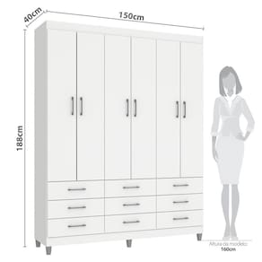 Parabéns, você acabou de encontrar o roupeiro com o melhor custo-benefício do mercado! Desfrute da multifuncionalidade do guarda-roupa Paraty e mantenha seu dormitório ordenado com estilo e comodidade. Possui 6 portas com amplo espaço interno equipado de cabideiro. Possui também 9 gavetas, o que garante espaço suficiente para organização completa e perfeita dos mais variados itens pessoais. Com seu design moderno, esse móvel não só otimiza o espaço, como também adiciona um toque de charme e beleza ao seu ambiente. É produzida em MDP 12mm de ótima qualidade e seu diferencial é o acabamento em Pintura UV de última geração que garante acabamento impecável e alta durabilidade. Suas corrediças são em PVC e seu interno é em madeira natural. Não perca a oportunidade de adquirir esse ótimo móvel!! Possui Cabideiros: Sim Acabamento da Gaveta: Pintura UV Escala de Brilho da Gaveta: Brilhante Material do Puxador da Gaveta: Plástico Possui Organizador de Gaveta: Não Acabamento da Porta: Pintura UV Escala de Brilho da Porta: Brilhante Material do Puxador da Porta: PVC Altura dos Pés: 7 cm Ambiente Principal: Quarto codigo_ean: 7900288086174 Complexidade da Montagem: Baixa: pode ser montado por uma pessoa sozinha Cor: Branco Cor da Porta: Branco Cor do Produto: Branco Cor Interna: Madeira Natural Escala de Brilho: Brilhante Espessura da Estrutura (mm): 12 mm Espessura das Portas (mm): 12 mm Espessura do Fundo (mm): 3 mm Espessura do Fundo das Gavetas (mm): 3 mm Gaveta com Chave: Não Informações Complementares: Corrediças Plásticas, Interno Sem Revestimento, 100% MDP 12mm, 9 Gavetas, Amplo espaço interno Itens Inclusos: 1 Guarda-Roupa, 1 Manual de Montagem Linha ou Coleção: Dormitório Manual de Montagem e Instalação: https://cdn2.madeiramadeira.com.br/atributo/fellicci/2737848-4065-17417159424946.pdf Marca: Fellicci Material da Gaveta: MDP Material da Porta: MDP Material dos Pés: PVC Material Principal: MDP modular: Não Necessita Montagem: Sim Nicho com Cabideiro: Não Origem do Produto: Nacional Peso: 63,2 kg Peso Máximo por Gaveta: 2 kg Porta Janelada: Não Possui Calceiros: Não Possui Capelinha: Não Possui Espaço para Vestidos Longos: Sim Possui Espelho: Não Possui Espelho Interno: Não Possui Ganchos: Não Possui iluminação: Não Possui Painel de TV: Não Possui Penteadeira: Não Possui Pés: 06 Possui Portas: Sim Possui Prateleiras: Não Possui Sapateira: Não Quantidade de Cabideiros: 02 Cabideiros Quantidade de Gavetas: 09 Gavetas Recomendações de Uso, Manutenção e Limpeza: Pano levemente úmido Sistema de Montagem: Pregos, Parafusos, Etc Tipo de Corrediça da Gaveta: Plástica Tipo de Dobradiça/Corrediça da Porta: Metálica Tipo de Gaveta: Interna Tipo de Guarda-Roupa: Casal Tipo de Puxador da Gaveta: Externo Tipo de Puxador da Porta: Externo