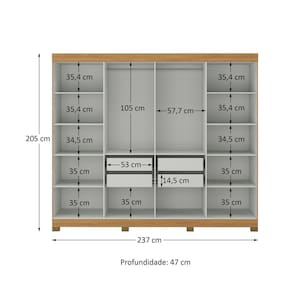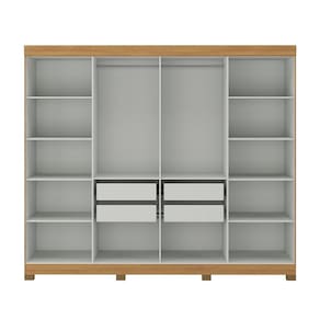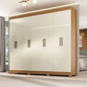 Durabilidade é a palavra para o guarda roupa Paris 8 portas, desenvolvido em material ecologicamente correto, o produto possui 8 portas de bater com um amplo espaço interno, gavetas internas com corrediças metálicas , varão e calceiro em madeira.