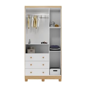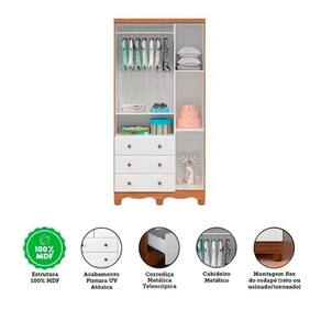 Guarda Roupa Peroba Tedy 3 Portas e 3 Gavetas Cor Branco com Amêndoa referencia , Com portas com PETG cristal, puxadores em ABS, cabideiro metálico, 2 opções de rodapé, corrediças telescópicas, em 100% MDF e com sistema antitombamento. É uma peça que tem funcionalidade e estilo em um único produto. Este guarda-roupa é a escolha perfeita para quem busca otimização o espaço sem abrir mão da estética. Ideal para qualquer ambiente, ele traz um toque de sofisticação e organização para seu lar. Com um design inteligente, maximiza a utilização do espaço, oferecendo um interior bem organizado. As portas transportadoras garantem fácil acesso ao conteúdo, enquanto as gavetas proporcionam praticidade no dia a dia. Seja para guardar roupas de cama, toalhas ou vestuário. Fabricado com materiais de alta qualidade, é resistente e projetado para durar, garantindo que você esteja investindo em um produto que atenderá suas expectativas ao longo dos anos.