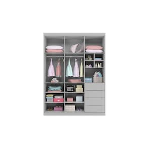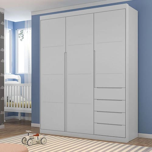 Encanto define essa linha de móveis. Delicada e cheia de detalhes, com certeza é uma ótima opção para o quartinho de seu bebê.. Com amplo espaço você vai deixar todas as roupas e acessórios do bebê organizados com total conforto e praticidade. Acabamento da Prateleira: Pintura UV Escala de Brilho da Prateleira: Semi-Brilho Acabamento da Gaveta: Pintura UV Escala de Brilho da Gaveta: Semi-Brilho Tipo de Corrediça: Metálica Telescópica Acabamento da Porta: Pintura UV Escala de Brilho da Porta: Semi-Brilho Ambiente Principal: Quarto Infantil codigo_ean: 7908506235755 Cor: Cinza Cor do Produto: Cinza Cor Interna: Cinza Escala de Brilho: Semi-Brilho Linha ou Coleção: Pérola Manual de Montagem e Instalação: https://product-hub-prd.madeiramadeira.com.br/689889/documents/7a9e7b77-3537-4ad4-af15-43ba07246b2c816235roupeiroperola3pta.pdf Material Principal: MDF modular: Não Necessita Montagem: Sim Peso: 158,65 kg Possui Espelho: Não Possui Portas: Sim Possui Prateleiras: Sim Quantidade de Gavetas: 04 Gavetas Quantidade de Prateleiras: 10 Prateleiras Suporta Até (kg): 98 kg Tipo de Guarda-Roupa: Infantil Ean: 7908506235755