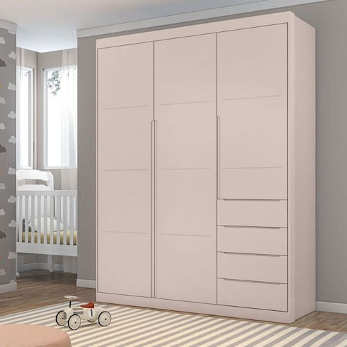 Encanto define essa linha de móveis. Delicada e cheia de detalhes, com certeza é uma ótima opção para o quartinho de seu bebê.. Com amplo espaço você vai deixar todas as roupas e acessórios do bebê organizados com total conforto e praticidade. Acabamento da Prateleira: Pintura UV Escala de Brilho da Prateleira: Semi-Brilho Acabamento da Gaveta: Pintura UV Escala de Brilho da Gaveta: Semi-Brilho Tipo de Corrediça: Metálica Telescópica Acabamento da Porta: Pintura UV Escala de Brilho da Porta: Semi-Brilho Ambiente Principal: Quarto Infantil codigo_ean: 7908506235762 Cor: Rosa Cor do Produto: Rosa Cor Interna: Rosa Escala de Brilho: Semi-Brilho Linha ou Coleção: Pérola Manual de Montagem e Instalação: https://product-hub-prd.madeiramadeira.com.br/689890/documents/b6c2e604-fe93-4816-895b-e1493c7da3d7816236cmodaperola.pdf Material Principal: MDF modular: Não Necessita Montagem: Sim Peso: 158,65 kg Possui Espelho: Não Possui Portas: Sim Possui Prateleiras: Sim Quantidade de Gavetas: 04 Gavetas Quantidade de Prateleiras: 10 Prateleiras Suporta Até (kg): 98 kg Tipo de Guarda-Roupa: Infantil Ean: 7908506235762