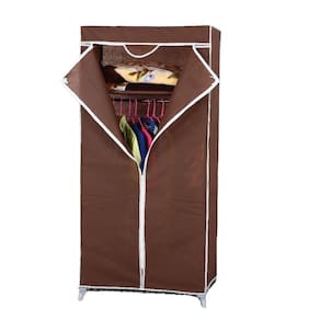 Guarda Roupa Portatil Aramario Ziper Organizador Cabideiro Arara Prateleira Sapateira Praia Marrom
