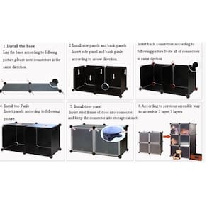 Cor: preto e estampado Material: plástico e ferro 15 compartimentos: 8 compartimentos fechados e 7 compartimentos abertos Tamanho de cada compartimento fechado: 35x35cm Medidas totais: A 157 x L 105 x P 35 cm Peso Bruto 15kg