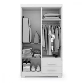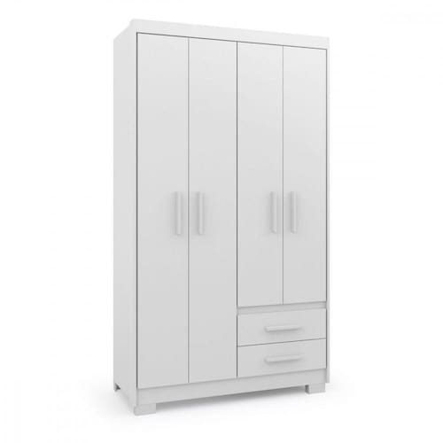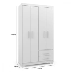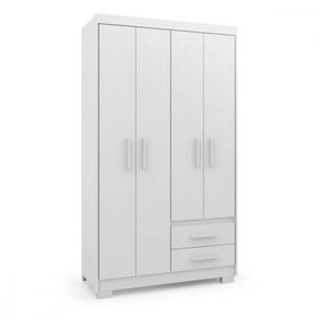 Características: - Estrutura em MDP de 12 e 15mm - 4 Portas - 2 Gavetas - Corrediça metálica - 04 Pés plástico - Cabideiro oblongo em alumínio - Puxadores em MDF - Acabamento de Pintura: Brilho - Suporte de peso das prateleiras, gavetas e cabideiros até 5kg - Garantia 12 meses
