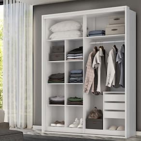 Roupeiro desenvolvido com material 100% em MDF e com acabamento touch com 7 camadas de tinta, agregando resistência e durabilidade ao seu móvel. Possui um excelente espaço interno, com divisões inteligentes para otimizar o espaço útil. Laterais engrossadas exibindo visual de um tamponamento seguindo as tendências do mobiliário internacional. Os puxadores e cabideiros são em alumínio, ou seja, não enferrujam e suportam maior peso. Interno em MDF 15mm. Corrediças telescópicas que proporcionam deslizamento suave e silencioso. Fundos com proteção que conferem maior resistência a umidade. Acabamento da Prateleira: Pintura Texturizada UV Escala de Brilho da Prateleira: Fosco Possui Cabideiros: Sim Acabamento da Gaveta: Pintura Texturizada UV Possui Organizador de Gaveta: Não Acabamento da Porta: Pintura Texturizada UV Escala de Brilho da Porta: Fosco Material do Puxador da Porta: Alumínio Altura do Espelho: 220,2 cm Altura dos Pés: 7 cm Ambiente Principal: Quarto Complexidade da Montagem: Média: pode ser montado por mais de uma pessoa e/ou necessite de maior conhecimento para montagem Cor: Branco Cor do Produto: Branco Cor Interna: Branco Escala de Brilho: Fosco Espessura do Espelho: 3 mm Formato do Espelho: Retangular Gaveta com Chave: Não Itens Inclusos: 1 Roupeiro e Manual de montagem Largura do Espelho: 78,4 cm Linha ou Coleção: Quality Manual de Montagem e Instalação: https://cdn2.madeiramadeira.com.br/atributo/sandrin/2037023-5598-17180445126241.pdf Material da Gaveta: MDF Material da Porta: MDF Material da Prateleira: MDF Material dos Pés: Plástico Material Principal: MDF modular: Não Necessita Montagem: Sim Origem do Produto: Nacional Peso: 160 kg Peso Máximo por Gaveta: 15 kg Peso Máximo por Prateleira: 10 kg Possui Calceiros: Não Possui Espelho: Sim Possui Pés: 02 Possui Portas: Sim Possui Prateleiras: Sim Quantidade de Espelho: 01 Quantidade de Gavetas: 03 Gavetas Recomendações de Uso, Manutenção e Limpeza: Utilizar pano seco. Sistema de Montagem: Parafusos, cavilhas, minifix. Tipo de Corrediça da Gaveta: Metálica Telescópica Tipo de Dobradiça/Corrediça da Porta: Telescópica Tipo de Fixação do Espelho: Molduras Tipo de Gaveta: Interna Tipo de Guarda-Roupa: Solteiro Tipo de Puxador da Gaveta: Não Possui Tipo de Puxador da Porta: Embutido