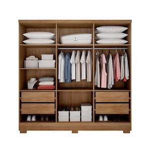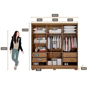 Material: Produto em MDP, Cabideiros em aluminio, Dobradicas metalicas, puxadores amadeirados e corredica telescopica.