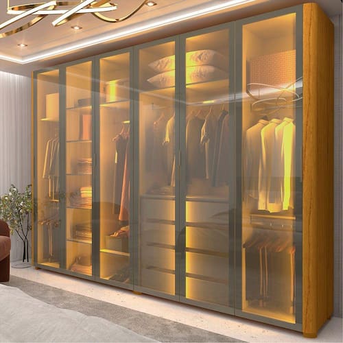 O Roupeiro Innova é um móvel moderno e elegante. Possui 06 portas em vidro Reflecta, cantos curvos e luz LED em cor quente que se destacam em seu visual e trazem um tom de aconchego a decoração. Seu interior pensado para facilitar a organização, possui gavetas espaçosas com corrediças telescópicas, ampla quantidade de prateleiras e tubos cabideiros. Este é o roupeiro perfeito para transformar seu quarto.