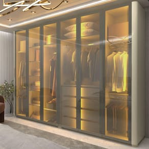 O Roupeiro Innova é um móvel moderno e elegante. Possui 06 portas em vidro Reflecta, cantos curvos e luz LED em cor quente que se destacam em seu visual e trazem um tom de aconchego a decoração. Seu interior pensado para facilitar a organização, possui gavetas espaçosas com corrediças telescópicas, ampla quantidade de prateleiras e tubos cabideiros. Este é o roupeiro perfeito para transformar seu quarto.