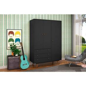 Guarda Roupa Retrô 20 Preto Ac / Preto Ac - Cor: Preto