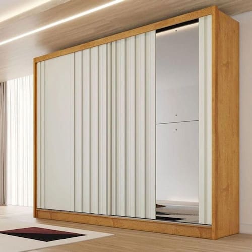 Guarda Roupa Solteiro Ripado com Espelho 2 Portas 4 Gavetas - Galati-Peroba/Off White - Made Marcs