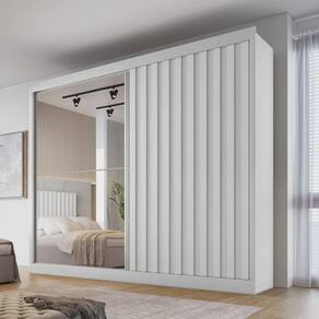 Guarda Roupa Ripado com Espelho 4 Gavetas - Atlanta-Branco Acetinado - Made Marcs   O Guarda Roupa Atlanta vai proporcionar um ambiente aconchegante mantendo um visual sofisticado e funcional. Composto por peças de extrema qualidade e com excelente espaço interno bem distribuídos, oferecendo máxima organização de forma prática. Fabricado em 100% MDP, 2 portas de correr, possui 4 gavetas com corrediças telescópicas, puxadores embutidos e cabideiros em alumínio. Amplo espaço interno. Aproveite!   Faz parte deste ambiente: 1 Guarda Roupa Casal Ripado com Espelho 2 Portas 4 Gavetas - Atlanta - Made Marcs Obs: Objetos de decoração não inclusos.   Particularidades do guarda-roupa: Características: - Ripado em MDF; - 100% MDF, chapas de 15mm; - Gavetas com corrediças telescópicas; - Cabideiros em alumínio; - Modulado para roupas longas; - Dobradiças modernas e reforçadas;   Dimensões: Altura: 2,18metros Largura: 2,06 metros Profundidade: 51 centímetros   Informações Importantes:  -Produtos podem apresentar diferenças de tonalidades entre a foto na tela e o produto real, devido a calibração de cor de tela.  -Limpar com flanela ou pano macio. Não utilizar álcool. Não utilizar produtos abrasivos ou corrosivos. -Nós prezamos pela qualidade da entrega em primeiro lugar, trabalhamos com transportadoras altamente selecionadas e os melhores materiais de embalagem. -A montagem é de total responsabilidade do comprador. Antes de comprar, verifique o espaço disponível para a montagem. -Certifique-se de que o produto caiba em elevadores e vãos de escadas, não fazemos içamentos. Quaisquer despesas deste tipo ficam a cargo do cliente -Garantia de 3 meses contra defeitos de fabricação.
