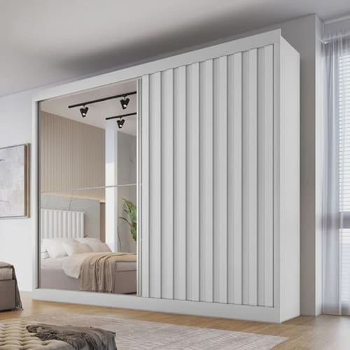 Guarda Roupa Ripado com Espelho 4 Gavetas - Atlanta-Branco Acetinado - Made Marcs