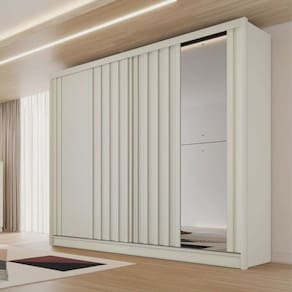 Guarda Roupa Solteiro Ripado com Espelho 2 Portas 4 Gavetas - Galati-Off White - Made Marcs O Guarda Roupa Galati vai proporcionar um ambiente aconchegante mantendo um visual sofisticado e funcional. Composto por peças de extrema qualidade e com excelente espaço interno com varias prateleiras e nichos, oferecendo máxima organização de forma prática. Fabricado em 100% MDP, 2 portas de correr, possui 4 gavetas com corrediças telescópicas, puxadores embutidos e cabideiros em alumínio. Amplo espaço interno. Aproveite! Faz parte deste ambiente: 1 Guarda Roupa Solteiro Ripado com Espelho 2 Portas 4 Gavetas - Galati - Made Marcs Obs: Objetos de decoração não inclusos. Particularidades do guarda-roupa: Características: - Ripado em MDF; - 100% MDF, chapas de 15mm; - Coluna lateral de 25mm; - Espelho lateral; - Gavetas com corrediças telescópicas; - Cabideiros em alumínio; - Modulado para roupas longas; - Dobradiças modernas e reforçadas; Dimensões: Altura: 2,35metros Largura: 2,26 metros Profundidade: 56 centímetros Informações Importantes: -Produtos podem apresentar diferenças de tonalidades entre a foto na tela e o produto real, devido a calibração de cor de tela. -Limpar com flanela ou pano macio. Não utilizar álcool. Não utilizar produtos abrasivos ou corrosivos. -Nós prezamos pela qualidade da entrega em primeiro lugar, trabalhamos com transportadoras altamente selecionadas e os melhores materiais de embalagem. -A montagem é de total responsabilidade do comprador. Antes de comprar, verifique o espaço disponível para a montagem. -Certifique-se de que o produto caiba em elevadores e vãos de escadas, não fazemos içamentos. Quaisquer despesas deste tipo ficam a cargo do cliente -Garantia de 3 meses contra defeitos de fabricação.