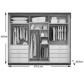 MEDIDAS Altura 237 cm Comprimento 277,5 cm Largura 56,5 cm CARACTERÍSTICAS Fabricante Novo Horizonte Modelo Guarda Roupa Robust Casal Com Espelho Garantia 3 meses Tipo de produto Guarda Roupa Casal Ambiente Quarto Estrutura MDF Quantidade de Portas 06 Quantidade de Gavetas 08 Tipo de Porta Bater Tipo de Corrediça Telescópica Material do Cabideiro Alumínio Material Trilho Alumínio Necessita Montagem Sim Acompanha Manual de Instalação Sim INFORMAÇÕES IMPORTANTES Objetos decorativos que porventura apareçam na foto, não acompanham o produto. Não nos responsabilizamos pela montagem/instalação dos produtos. Montagens, desmontagens e instalações são responsabilidades do cliente. Indicamos que contrate uma empresa de montagem ou um montador de sua confiança. Além disso, favor verificar se os pés e acessórios estão dentro do forro inferior do produto. Em suma, todas as informações divulgadas sobre o produto são de responsabilidade do Fabricante. As cores do produto podem variar de acordo com o seu monitor, a iluminação do ambiente em que você está e até mesmo a sua percepção visual. Além da cor, pequenos detalhes e acabamentos podem não ficar evidentes na foto, por isso as imagens são meramente ilustrativas