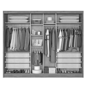 MEDIDAS Altura 237 cm Comprimento 277,5 cm Largura 56,5 cm CARACTERÍSTICAS Fabricante Novo Horizonte Modelo Guarda Roupa Robust Casal Sem Espelho Garantia 3 meses Tipo de produto Guarda Roupa Casal Ambiente Quarto Estrutura MDF Quantidade de Portas 06 Quantidade de Gavetas 08 Tipo de Porta Bater Tipo de Corrediça Telescópica Material do Cabideiro Alumínio Material Trilho Alumínio Necessita Montagem Sim Acompanha Manual de Instalação Sim INFORMAÇÕES IMPORTANTES Objetos decorativos que porventura apareçam na foto, não acompanham o produto. Não nos responsabilizamos pela montagem/instalação dos produtos. Montagens, desmontagens e instalações são responsabilidades do cliente. Indicamos que contrate uma empresa de montagem ou um montador de sua confiança. Além disso, favor verificar se os pés e acessórios estão dentro do forro inferior do produto. Em suma, todas as informações divulgadas sobre o produto são de responsabilidade do Fabricante. As cores do produto podem variar de acordo com o seu monitor, a iluminação do ambiente em que você está e até mesmo a sua percepção visual. Além da cor, pequenos detalhes e acabamentos podem não ficar evidentes na foto, por isso as imagens são meramente ilustrativas