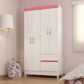 Guarda Roupa Roupeiro 04 Portas Lotus Branco Rosa Flex Demóbile