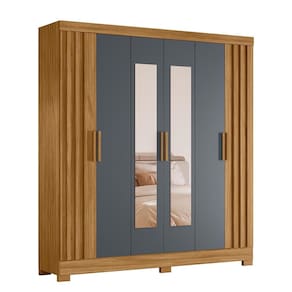 Características: Estrutura em MDP Acabamento em Pintura UV 06 Portas com Dobradiças Metálicas 02 Gavetas Internas com Corrediças Telescópicas Portas com detalhes Ripado Puxadores de MDF Cabideiros e Calceiro em Alumínio Pés em PVC Prateleiras Internas com Amplo Espaço Acompanha Espelhos