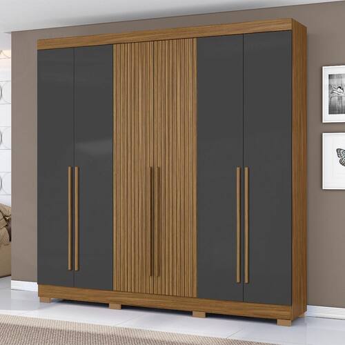 Características: Estrutura em MDP Acabamento em verniz texturizado 06 Portas com dobradiças metálicas 02 Gavetas internas com corrediças metálicas Puxadores de MDF Cabideiro de madeira Amplo espaço interno Pés de plástico