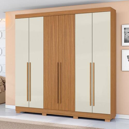 Guarda Roupa Roupeiro 230 6 Portas 2 Gavetas Cinamomo Ripado Off White Aramóveis - Cinamomo | Off White