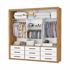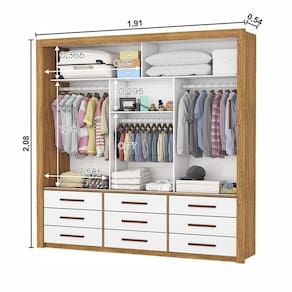 O Guarda-Roupa Anjos, possui maleiros para organizar as peças maiores, o que é ideal para guardar malas, cobertores, edredons, entre outros. Os três cabideiros, além de resistentes, são ideais para pendurar camisas, calças, vestidos, sobretudos, entre outras. O designer interno possibilita acomodar e organizar todas as roupas e acessórios respeitando as exigências de um casal. As nove gavetas fixadas sobre corrediças metálicas, são ideais para guardar pijamas, shorts, meias, roupas de academias e mais.